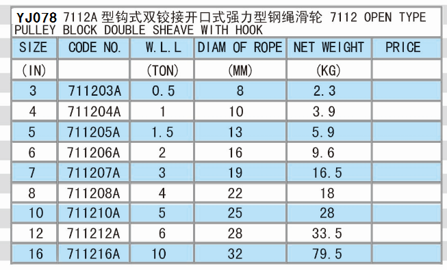 » YJ078 7112 OPEN TYPE PULLEY BLOCK DOUBLE SHEAVE WITH HOOK