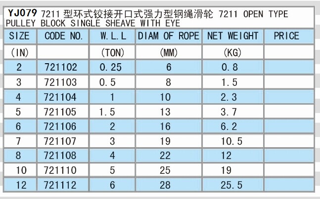 » YJ079 7211 OPEN TYPE PULLEY BLOCK SINGLE SHEAVE WITH EYE