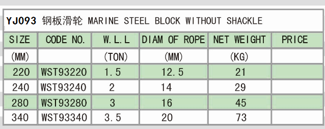 YJ093 MARINE STEEL BLOCK WITHOUT SHACKLE