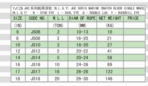 » YJ125 JHC SERIES MARINE SNATCH BLOCK SINGLE WHEEL