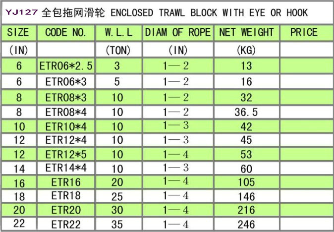 YJ127 ENCLOSED TRAWL BLOCK WITH EYE OR HOOK