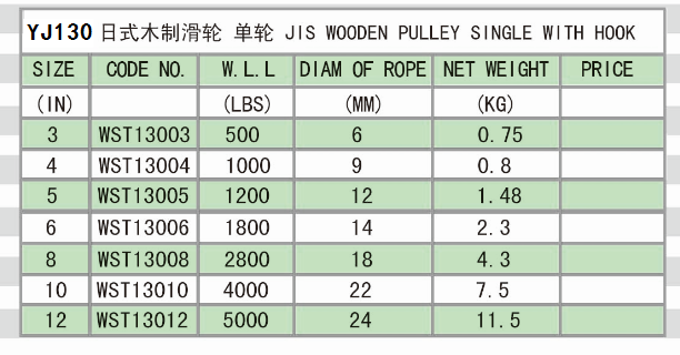 » YJ130 JIS WOODN PULLEY SINGLE WITH HOOK
