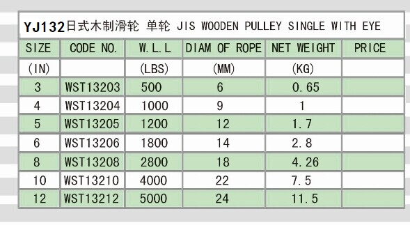 » YJ132 JIS WOODEN PULLEY SINGLE WITH EYE