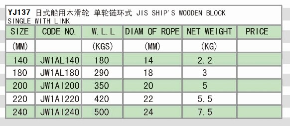» YJ137 JIS SHIP'S WOODEN BLOCK SINGLE WITH LINK