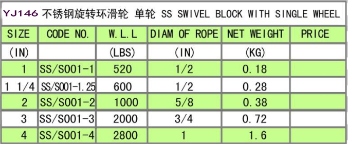 YJ146 SS SWIVEL BLOCK WITH SINGLE WHEEL