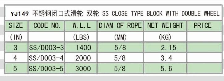 YJ149 SS CLOSE TYPE BLOCK WITH DOUBLE WHEEL
