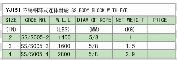 » YJ151 SS BODY BLOCK WITH EYE