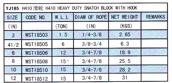 » HARDWARE YJ185 H410 HEAVY DUTY SNATCH BLOCK WITH HOOK