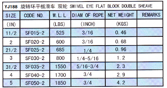 » YJ188 SWIVEL EYE FLAT BLOCK DOUBLE SHEAVE