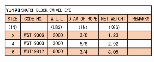 YJ198 SNATCH BLOCK SWIVEL EYE