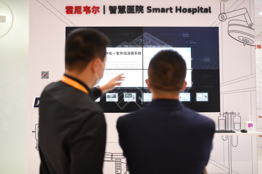 U.S. conglomerate Honeywell displays its smart hospital solutions during the third China International import Expo (CIIE) in Shanghai, east China, Nov. 10, 2020. (Xinhua/Li Renzi)