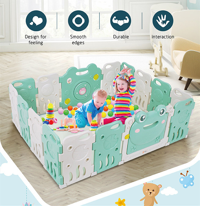 The ABST 16 Sided Panel Baby Playpen Interactive Kids Safety Gates Child Barrier - Frog Design will be a competent helper to