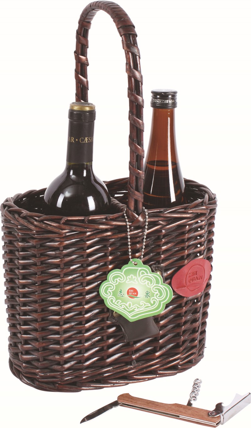 WILLOW WINE BASKET WITH 1 PC BROWN CORKSCREW |
