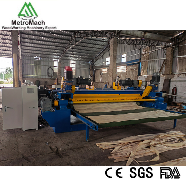 This type 8FT veneer peeling machine is suitable for both hard wood and softwood.It's farictional guide screw with 48mm pitch,double driving can work well for hard wood,like Eucalyptus softwood like poplar.In general, veneer peeling machine has 4feet/5feet and 8feet/9feet, their configuration will be very different according to different requires. One type is not suitable for all people, so we always produce machinie according to our clients own conditions, make sure offer the most suitable machine to them.