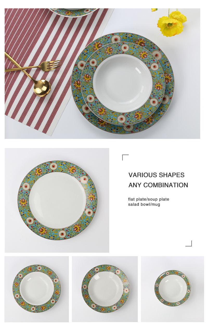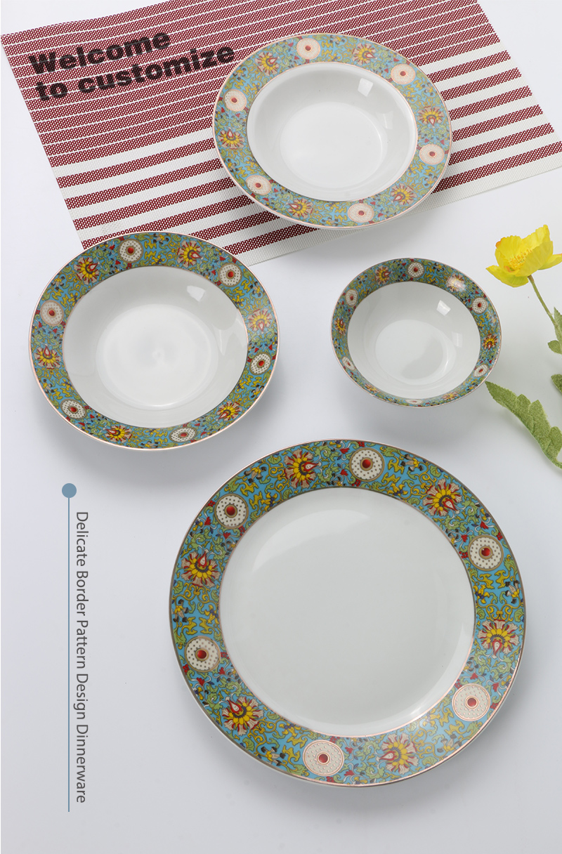 16pcs Exquisite decal design green ceramic dinnerware |