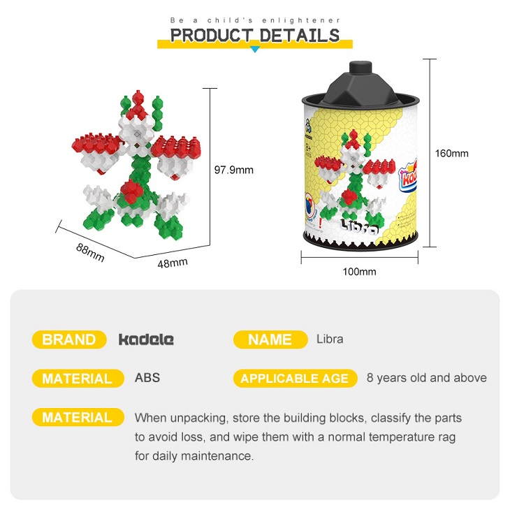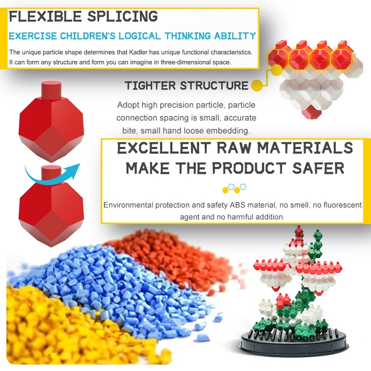 KADELE building block kits are all made of high-quality ABS plastic, which is a safe, non-toxic, odorless, and BPA-free material. All modules are integrally formed, with bright colors, very smooth surface and very good texture.