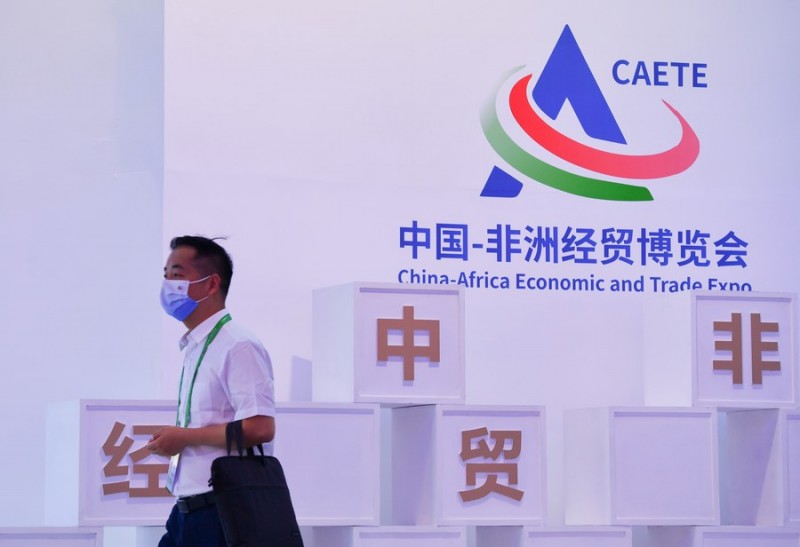 A staff member is seen during the second China-Africa Economic and Trade Expo in Changsha, central China's Hunan Province, on Sept. 26, 2021. (Xinhua/Chen Zeguo)